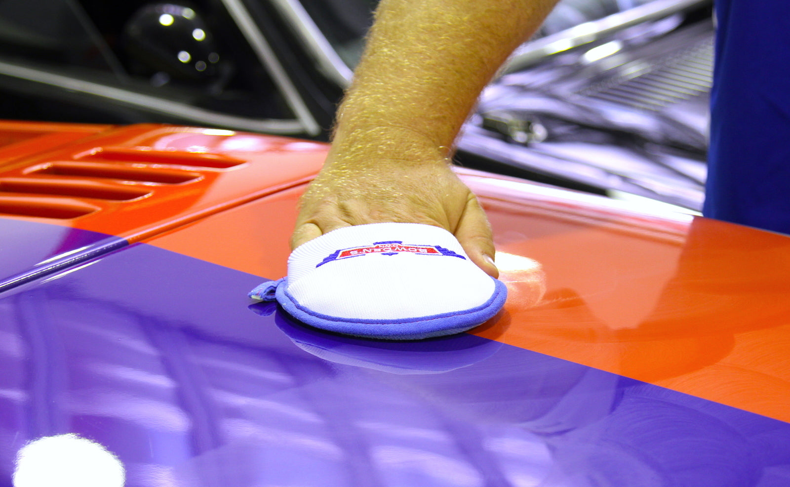 To get beautiful looking paint, you need the right tools. We custom made this applicator mitt after our experiences in detailing many thousands of cars. It’s the right size, has the ideal microfibre material, a new non-scratch edging and that nice foam inside that makes sure you don’t get any finger pressure points, ensuring a perfect even surface to apply any cleanser, polish or wax to your car. With the new elastic back you won’t drop it either! You can even use it to apply interior cleansers and protectants.