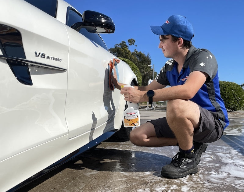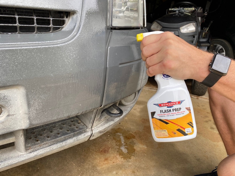 Flash Prep is a surface preparation spray to remove older waxes, silicones, fillers and oils from the surface, prior to applying last step products such as; modern waxes, sealants, trim restorers and even ceramic coatings. This step will improve your sealant's longevity on the surface. It uses a strong and effective formula that leaves zero residue and is safe for all surfaces including paint, plastics, headlights, glass, chrome and more.