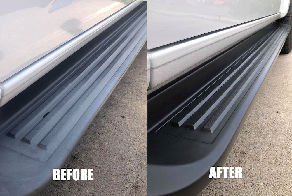 - For rejuvenating sun damaged, unpainted exterior textured plastics to a rich, dark finish.