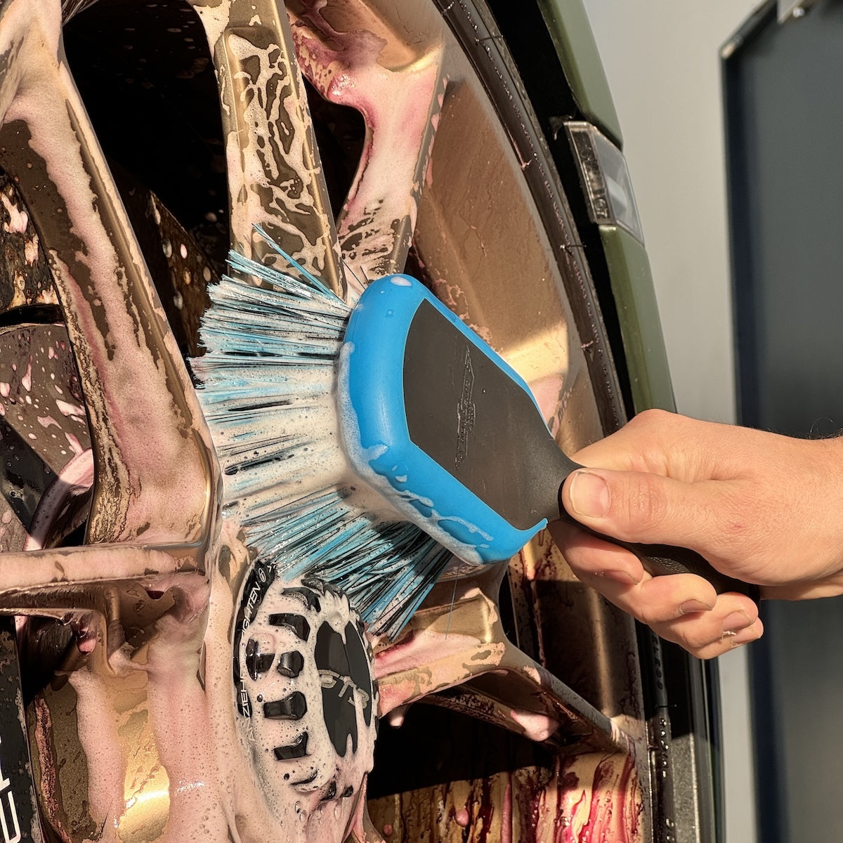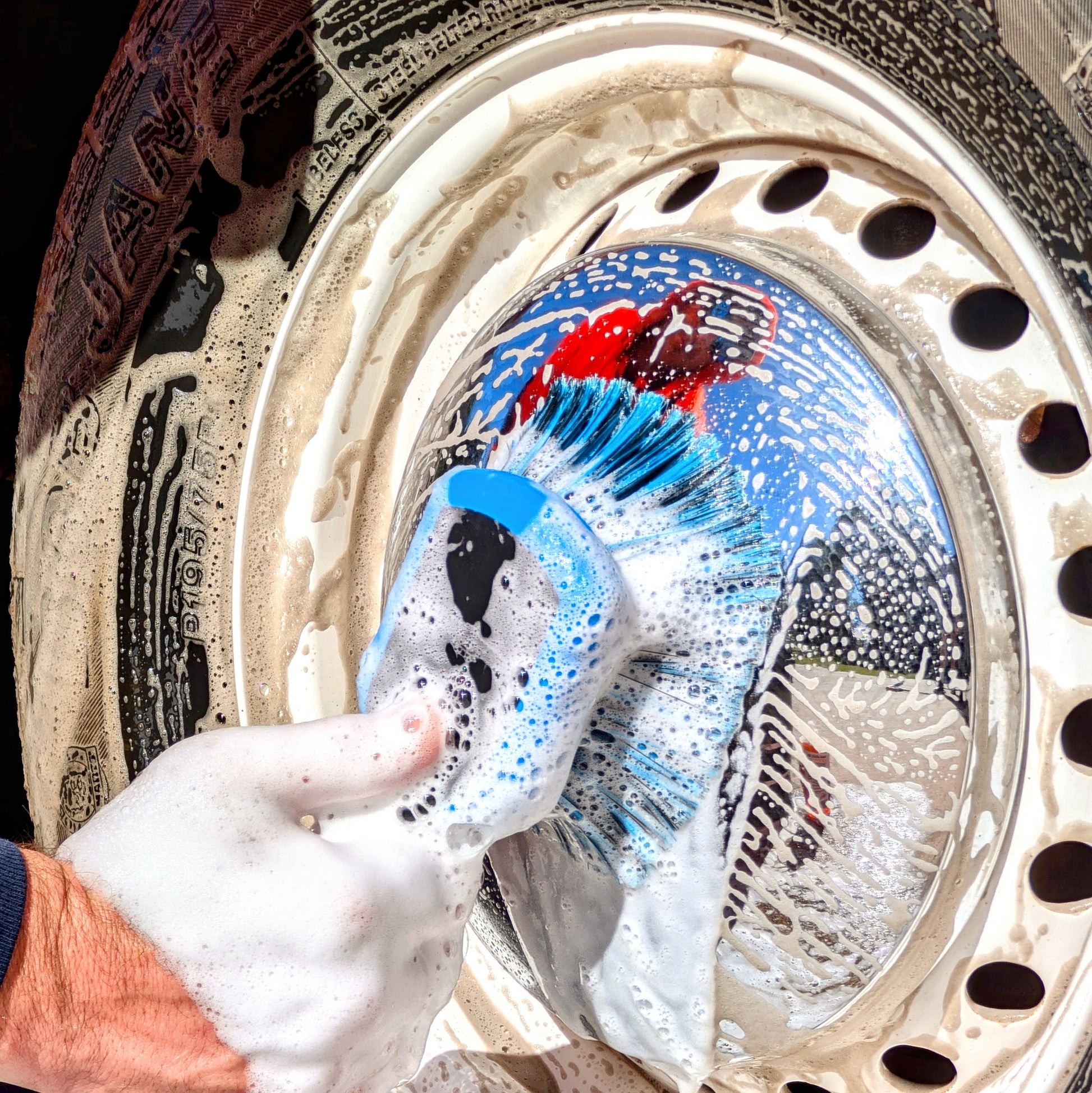 - Uses chemical-resistant, durable synthetic bristles that are compatible with all wheel cleaners.