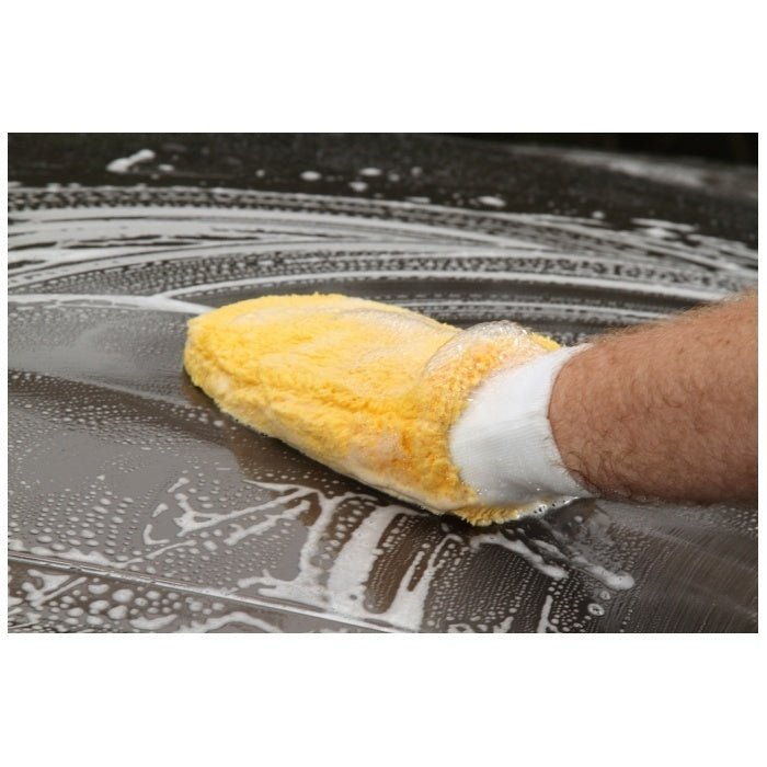We found that the majority of scratches on cars were created by badly designed sponges and wash mitts, as small hard particles get caught in the sponge or material weave and swirl up or micro-scratch the duco every time they are used. Our solution was to use ultra microfibre so it is super soft and absorbent, but use a very short nap weave, to minimise particles get caught up in it.