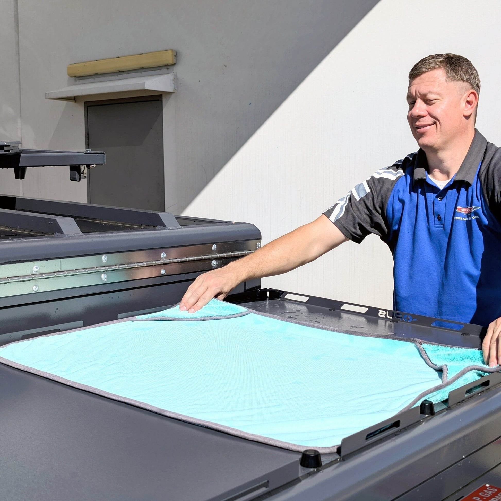 We’ve also designed this larger towel with two handy corner pockets. Our team found these pockets make it much easier and faster to dry larger 4WDs, caravans, boats, campervans, and work vehicles. They help with those tighter areas, like weather shields around windows, bar work, sports bars, and snorkels. You’ll love the time and effort it saves!